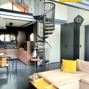 Sprzedawana część to 72m2 z antresolą. Na parterze znajduje się salon o pow. 31m2 i wysokości 6m z ogromnym oknem wychodzącym na ogród i taras , kuchnia o pow. 9m2 również z wyjściem na taras, sypialnia z garderobą o pow. 14.5m2 oraz duża łazienka z prysznicem. Na antresoli strefa prywatna z drugą łazienką.